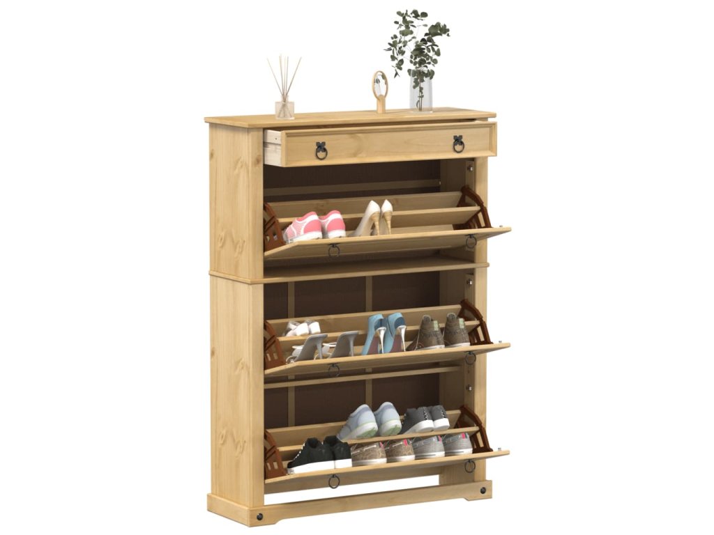 Tento dřevěný botník vám poslouží k efektivnímu ukládání vašich bot a stane se zároveň praktickou dekorací vašeho domova.