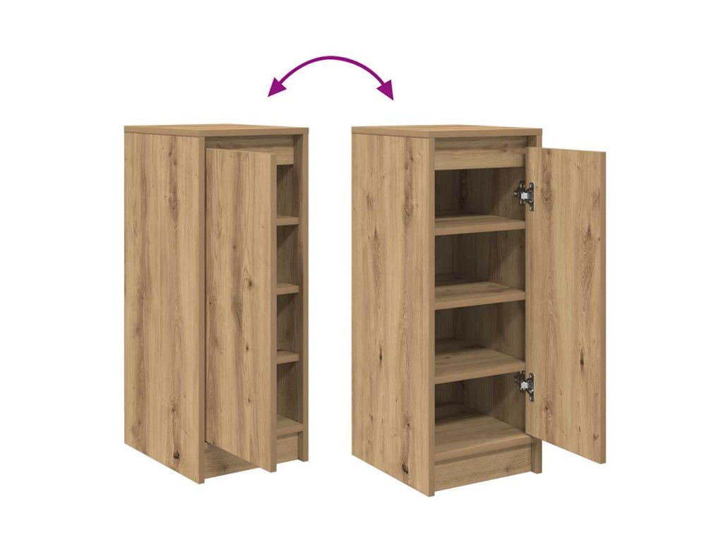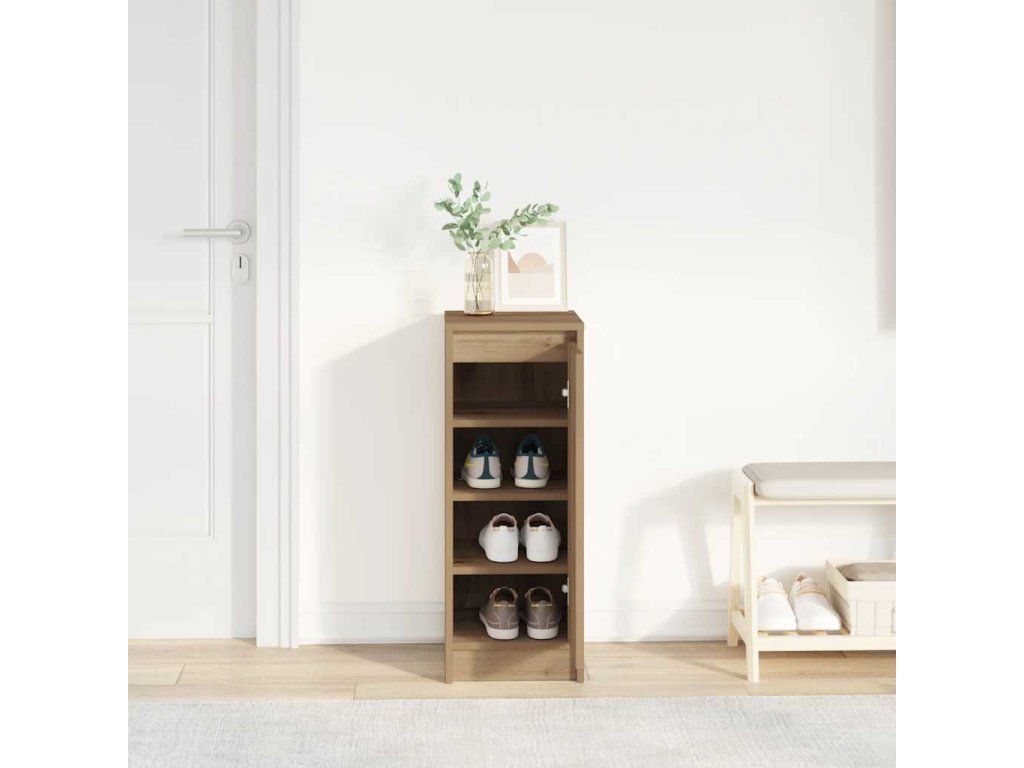 - Praktické dveře: Skříňka na boty je vybavena dvířky, která chrání boty před prachem a nečistotami a pomáhají udržovat čistý a uklizený vzhled.
