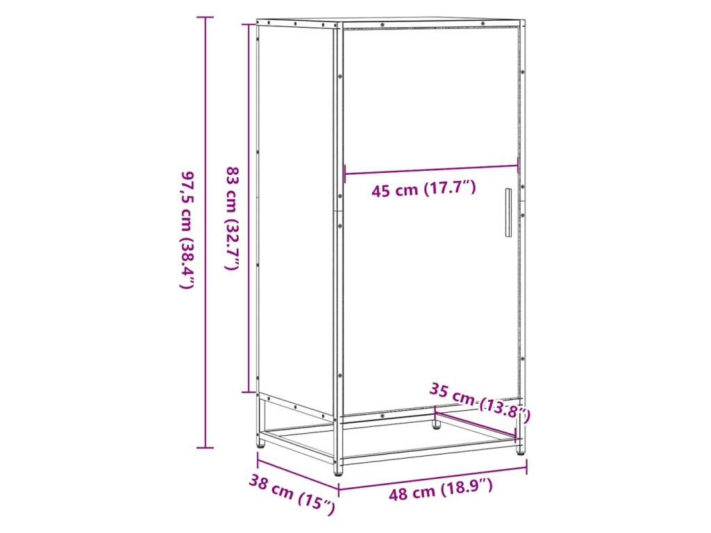 - Celkové rozměry: 48 x 38 x 97,5 cm (Š x H x V)