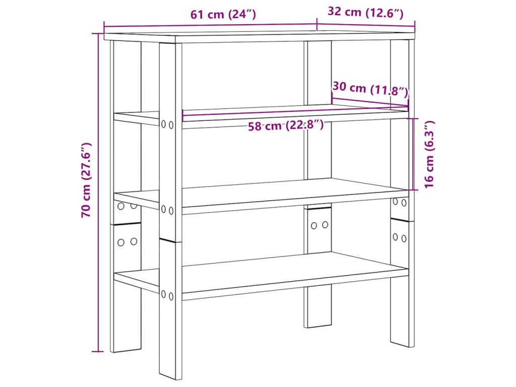 - Dostatek úložného prostoru: Regál na boty má police, které poskytují dostatek prostoru pro uložení obuvi. S tímto praktickým botníkem už se nebudete muset zlobit, že máte boty rozházené po celé chodbě.