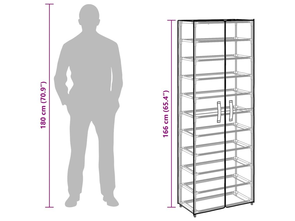 - Dostatek úložného prostoru: Vzhledem k 10patrovému designu se do této skříně snadno vejde 30 párů bot, takže všechny vaše oblíbené páry budou uklizené a dobře organizované na jednom místě.