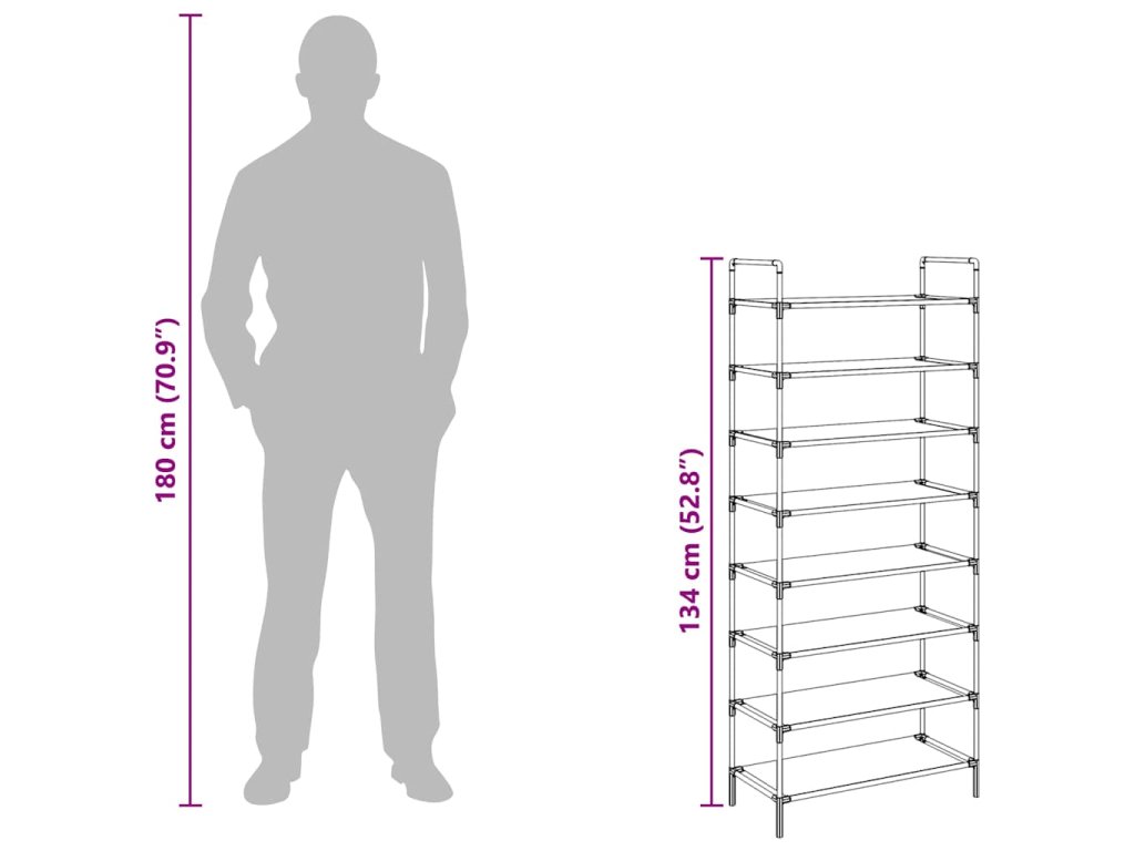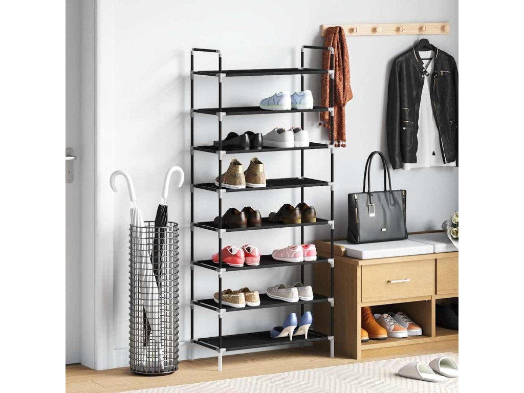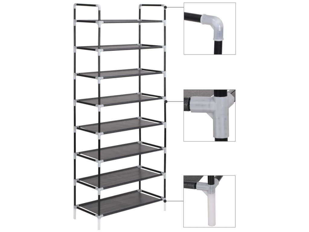 Má trubkový kovový rám, který je lehký, ale přitom robustní, lze jej tedy snadno přemisťovat a zároveň je i velmi stabilní. Má osm prostorných polic, vyrobených z netkané textilie, které vám poskytnou spoustu prostoru pro přehledné ukládání vašich bot tak, aby vám nepřekážely.
