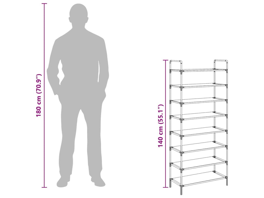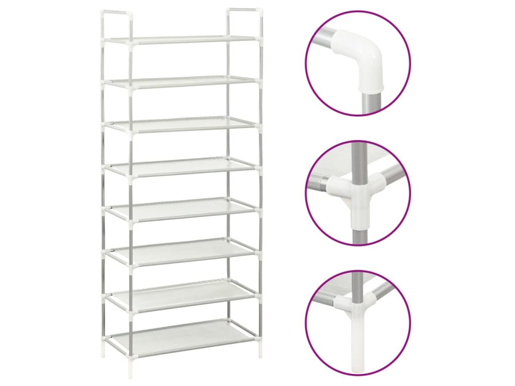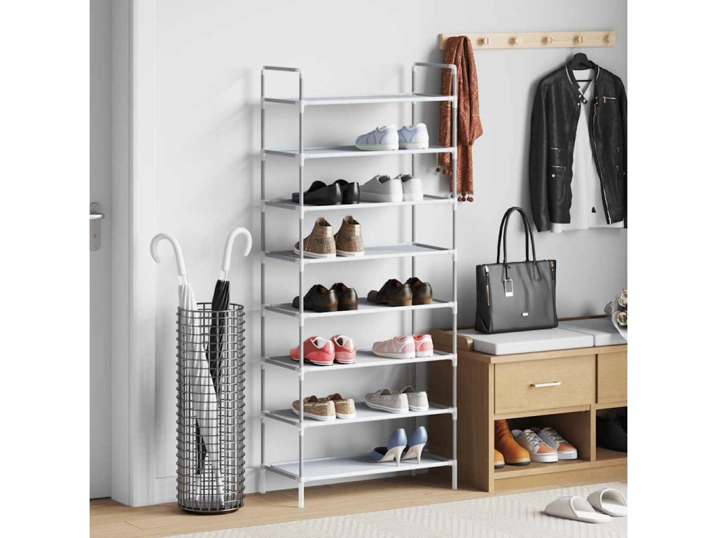 vidaXL Botník s 8 policemi kov a netkaná textilie stříbrný