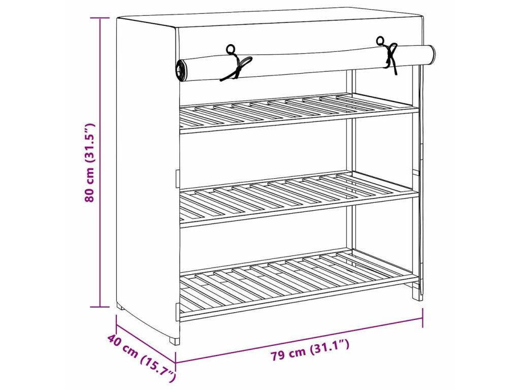 Do 3 polic si snadno uložíte až 6 párů bot, takže všechna vaše obuv bude krásně uspořádaná a na jednom místě. Textilní potah skryje vaše boty před pohledem zvenčí a zároveň je ochrání před prachem. Botník je navíc velmi lehký, takže jej v případě potřeby můžete bez námahy přesouvat. Sestavení našeho botníku je snadné.