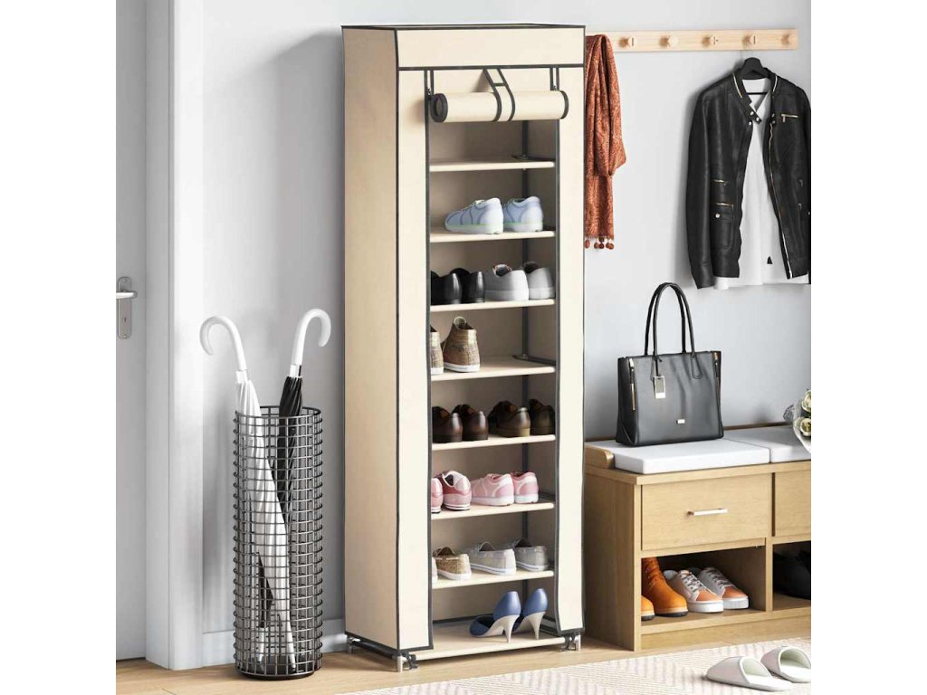 Tento botník s 8 policemi je schopen pojmout až 20 párů bot, takže můžete ukládat všechny své oblíbené boty přehledně a na jednom místě. Potah z vysoce kvalitní netkané textilie se zipy umožňuje uložené boty skrýt a zároveň je chránit před prachem. Botník je lehký a lehce se s ním manipuluje.