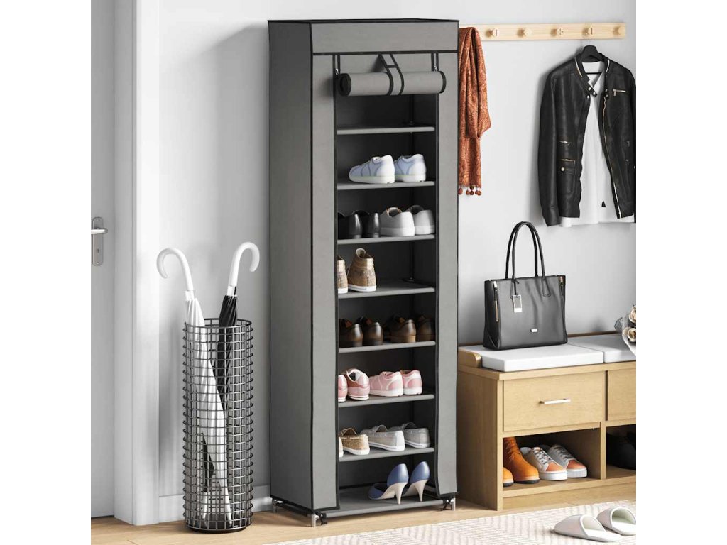 Tento botník s 8 policemi je schopen pojmout až 20 párů bot, takže můžete ukládat všechny své oblíbené boty přehledně a na jednom místě. Potah z netkané textilie se zipy umožňuje uložené boty skrýt a zároveň je chránit před prachem. Botník je lehký a lehce se s ním manipuluje.