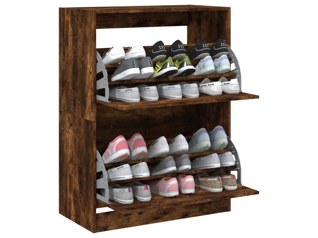 vidaXL Botník se 2 výklopnými zásuvkami kouřový dub 80 x 42 x 108 cm
