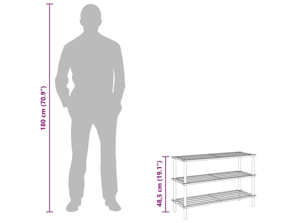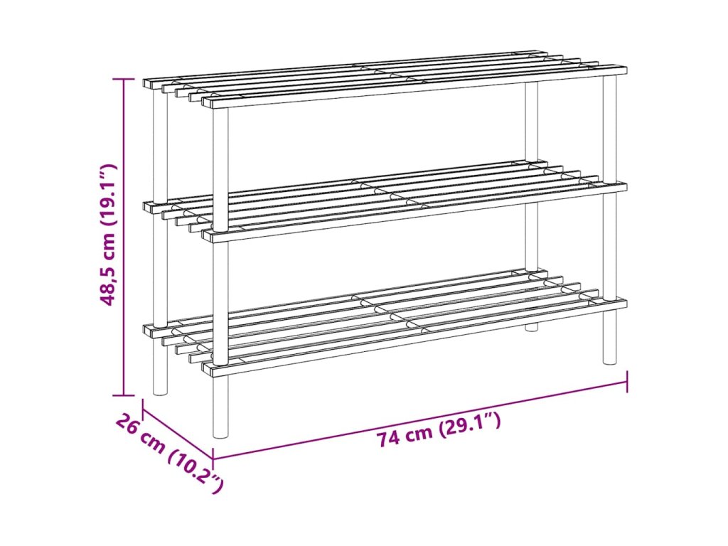 - Rozměry každého regálu na boty: 74 x 26 x 48,5 cm (D x Š x V)