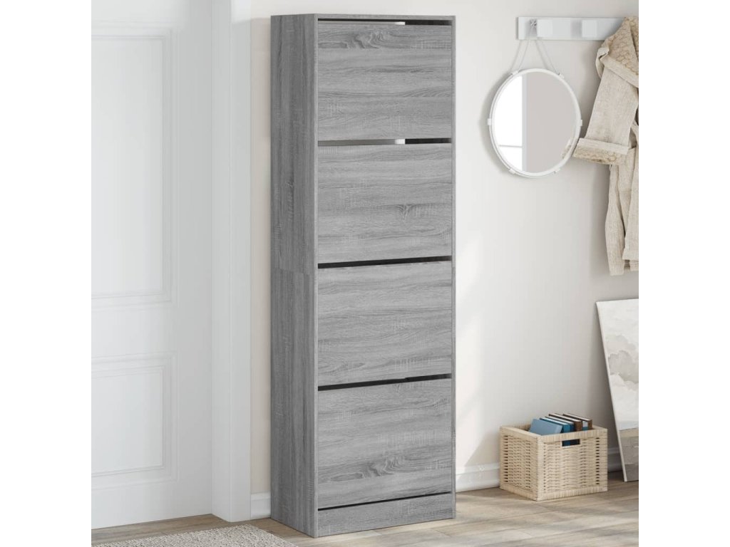 vidaXL Botník se 4 výklopnými zásuvkami šedý sonoma 60 x 34 x 187,5 cm