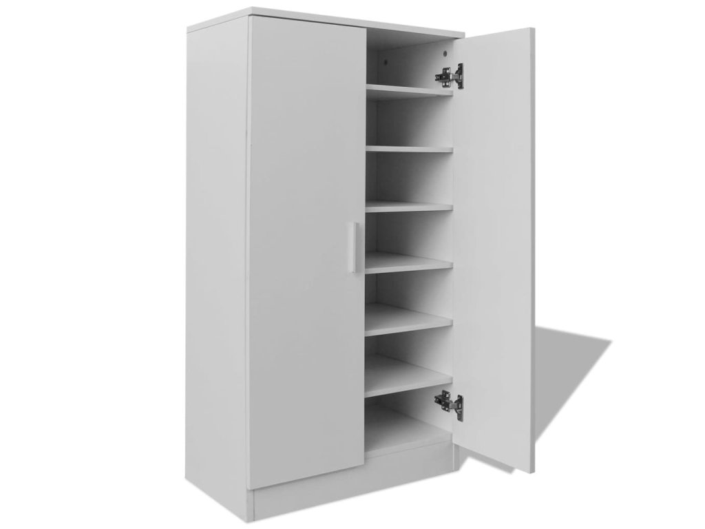 Tento botník má 7 přihrádek za dvoukřídlými dvířky, z nichž každá pojme 2 páry obuvi, takže do botníku se vejde celkem 14 párů. Tato pevná a odolná skříňka do předsíně je vyrobena z vysoce kvalitních materiálů, takže je velmi praktickým místem pro úhledné a stylové ukládání vaší obuvi.