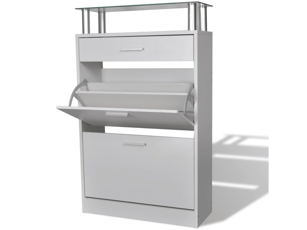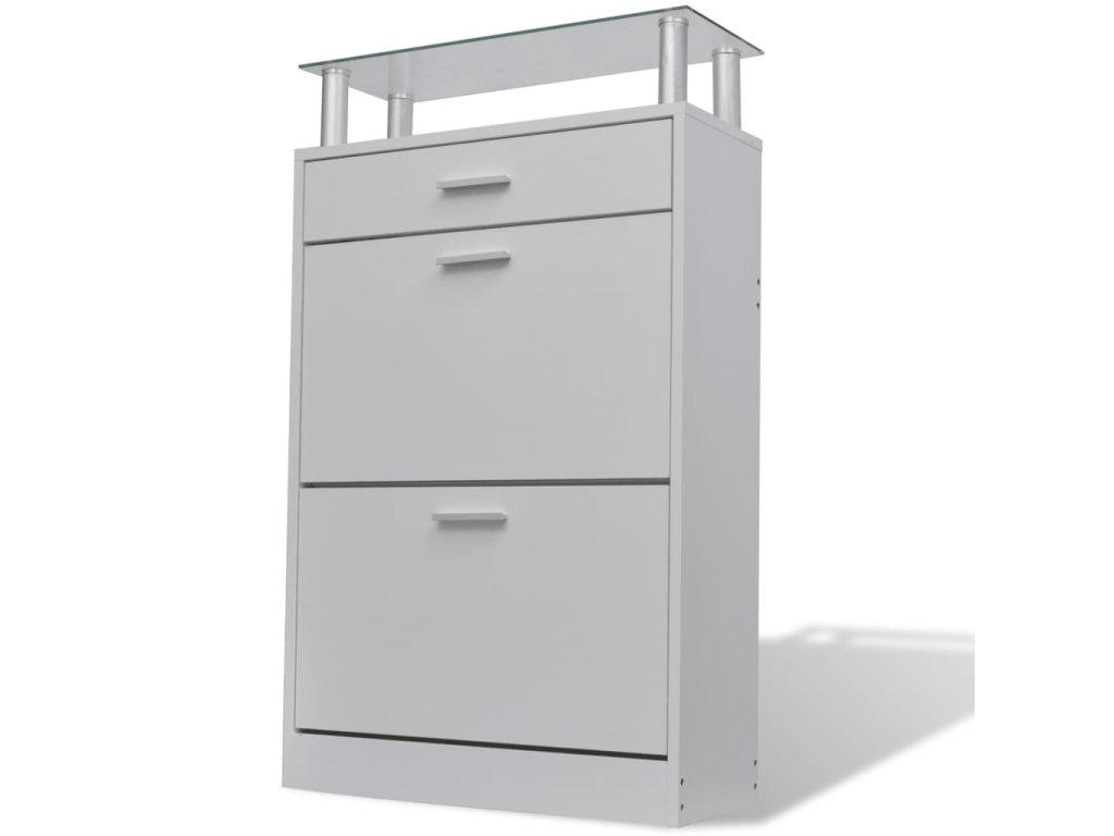 - S 2 velkými přihrádkami na uložení bot, 1 zásuvkou a 1 horní skleněnou policí