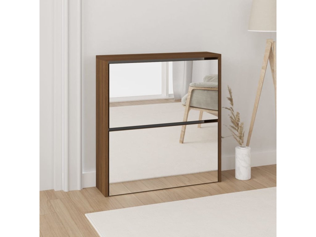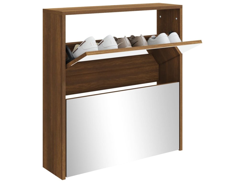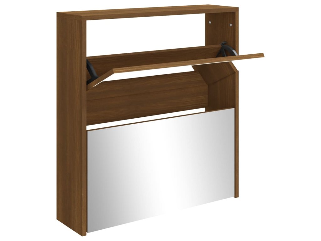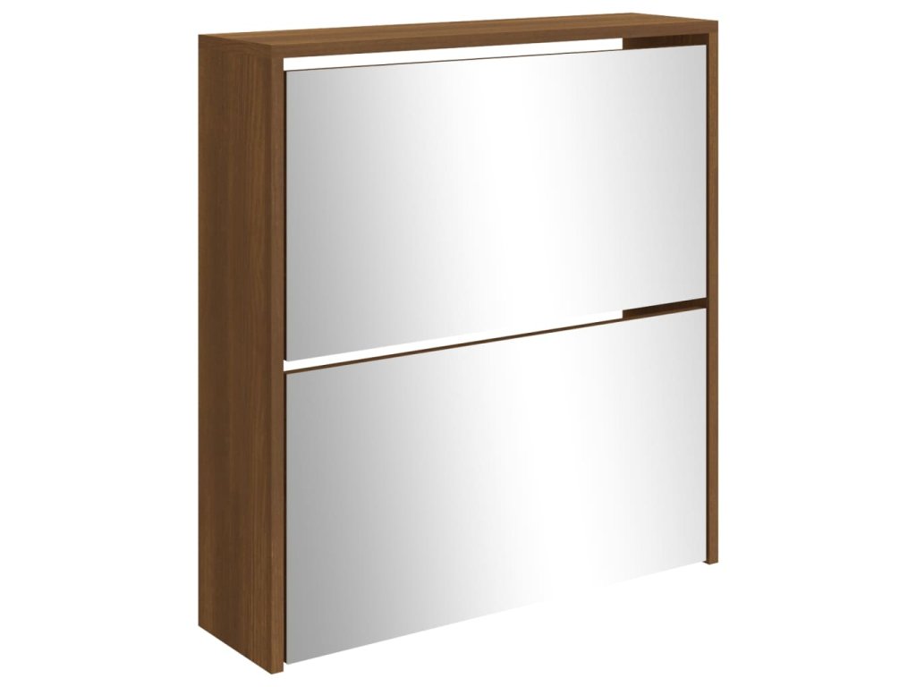 vidaXL Botník se zrcadlem 2patrový hnědý dub 63 x 17 x 67 cm