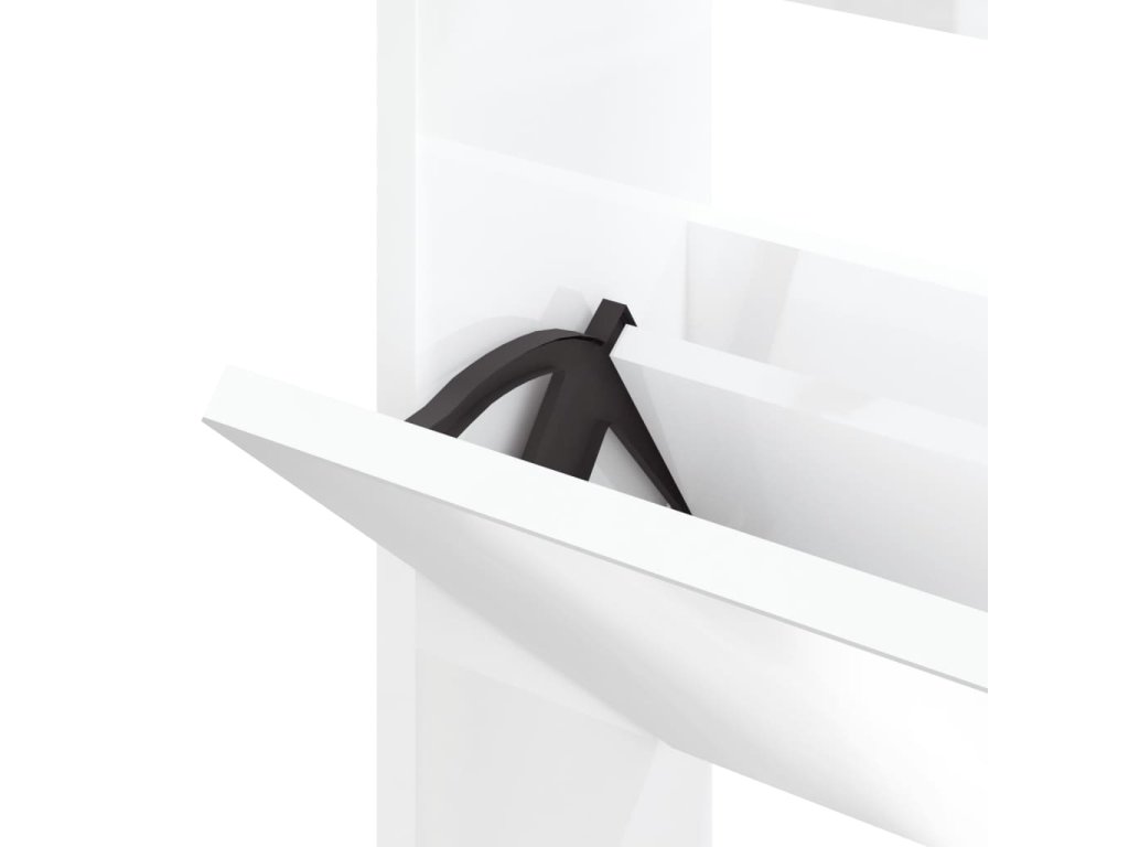 vidaXL Botník se zrcadlem 3patrový bílá s vysokým leskem 63x17x102,5cm