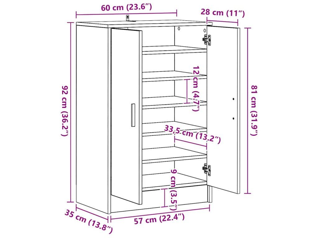 vidaXL Botník šedý sonoma 60 x 35 x 92 cm kompozitní dřevo