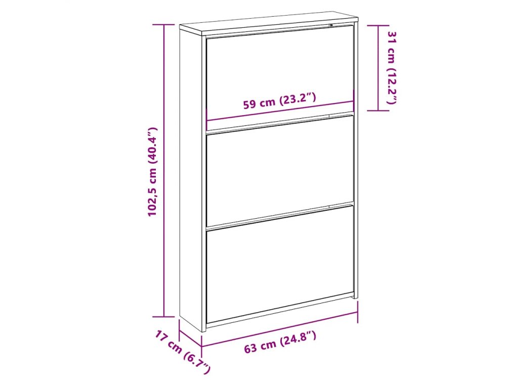 vidaXL Botník třípatrový zrcadlový dub 63 x 17 x 102,5 cm
