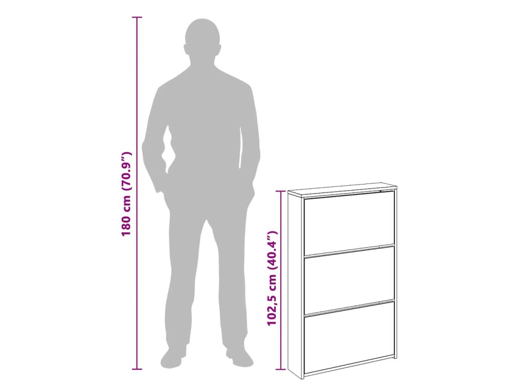 Tento zrcadlový botník má tři vyklápěcí přihrádky, z nichž každá pojme 3 až 4 páry obuvi. Botník se montuje přímo na stěnu. Tato pevná a odolná předsíňová skříňka je vyrobena z vysoce kvalitního materiálu a je velmi praktickým kusem nábytku, kde můžete úhledně a stylově ukládat své boty, aby nebyly poházené po bytě.
