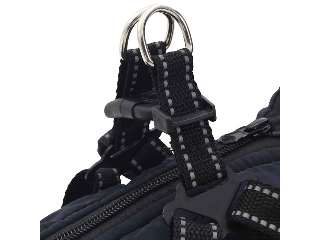 - Upevnění pomocí D-kroužku: Díky robustním D-kroužkům je možné bezpečně připevnit vodítko, což zvyšuje bezpečnost a je ideální volbou pro procházky.