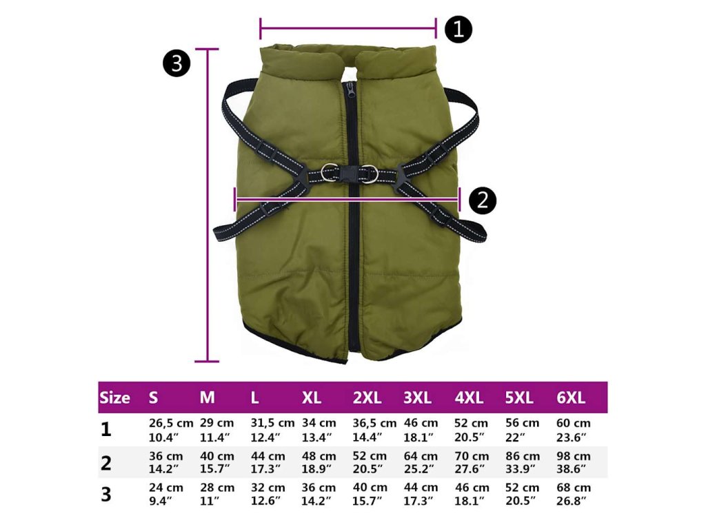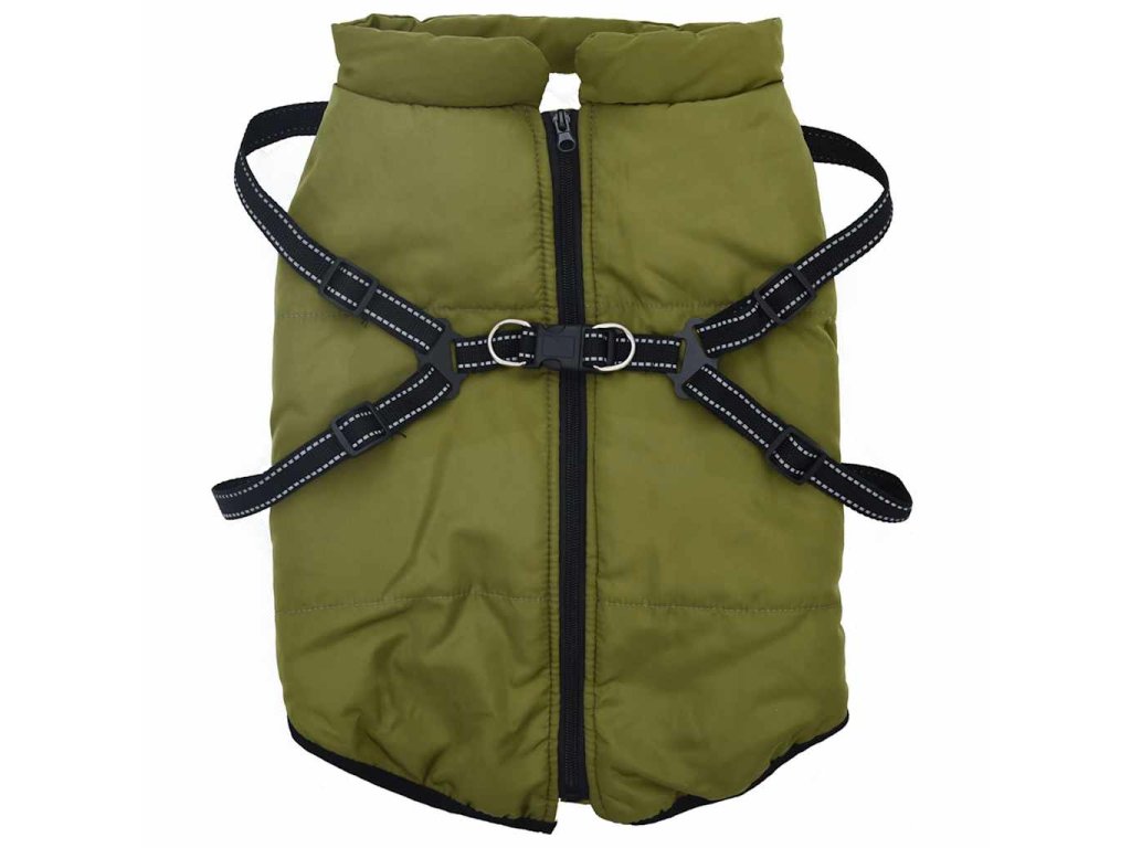Udržujte svého psa v teple v chladných dnech s touto útulnou bundou pro psy se zabudovaným postrojem!
