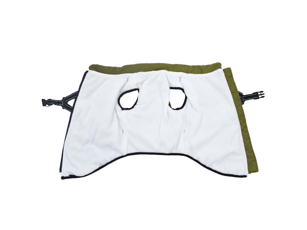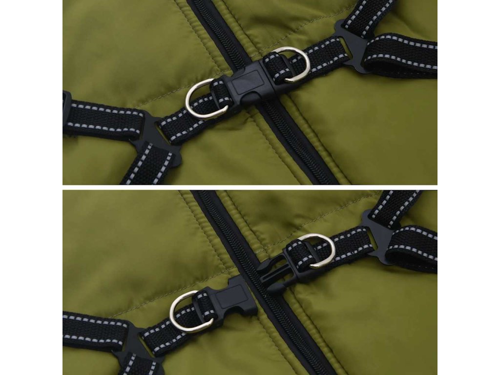 - Nastavitelný postroj: Tato bunda pro venčení psů je vybavena nastavitelnými popruhy pro dokonalé přizpůsobení, které poskytují maximální pohodlí.