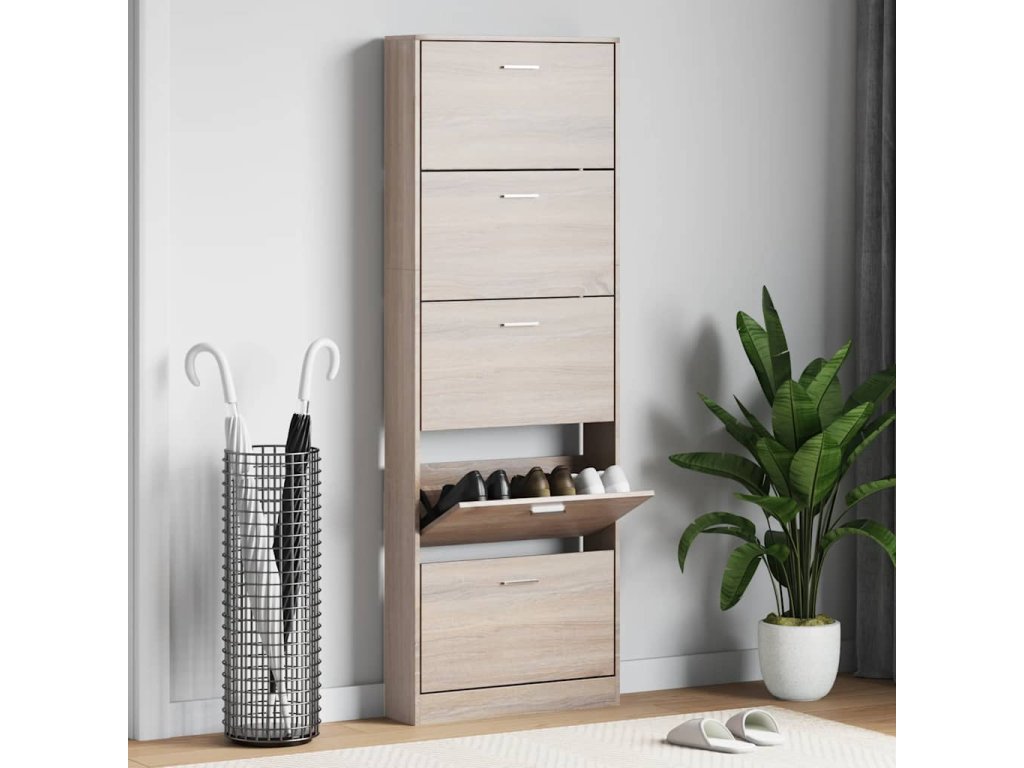 Tento dřevěný botník obsahuje 5 přihrádek a je vyroben v jednoduchém, avšak stylovém designu. Od této chvíle se vaše boty nebudou více povalovat po zemi.