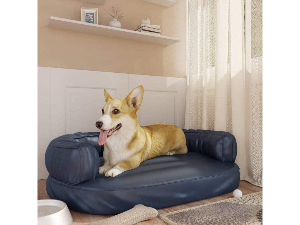 vidaXL Ergonomický molitanový pelíšek pro psy modrý 88x65cm umělá kůže