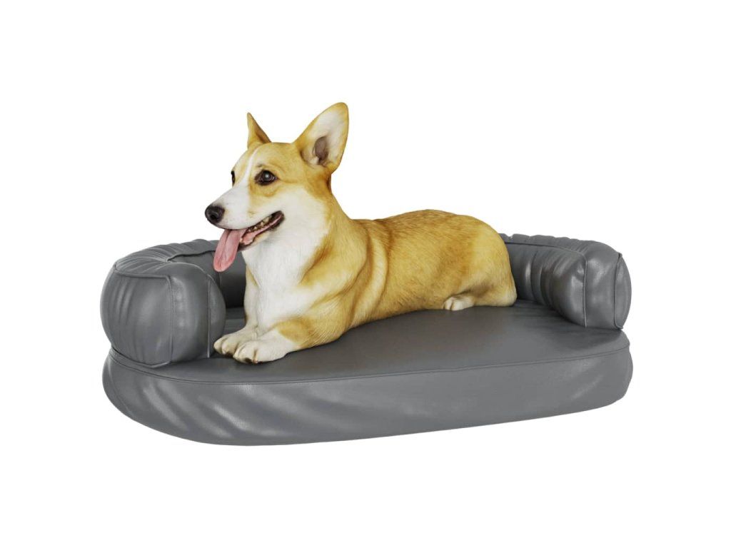 vidaXL Ergonomický molitanový pelíšek pro psy šedý 75x53 cm umělá kůže