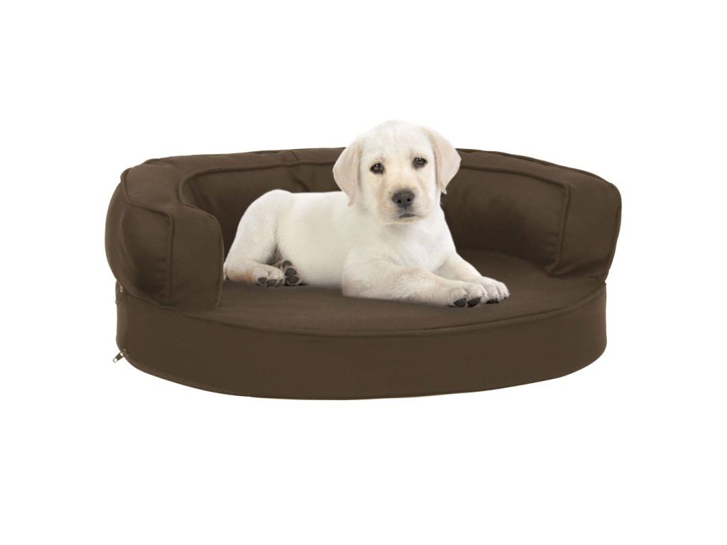 vidaXL Ergonomický pelíšek pro psy 60 x 42 cm lněný vzhled hnědý