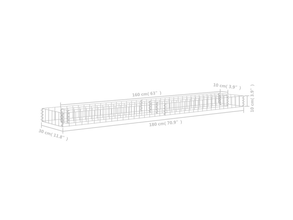 vidaXL Gabionový vyvýšený záhon pozinkovaná ocel 180 x 30 x 10 cm