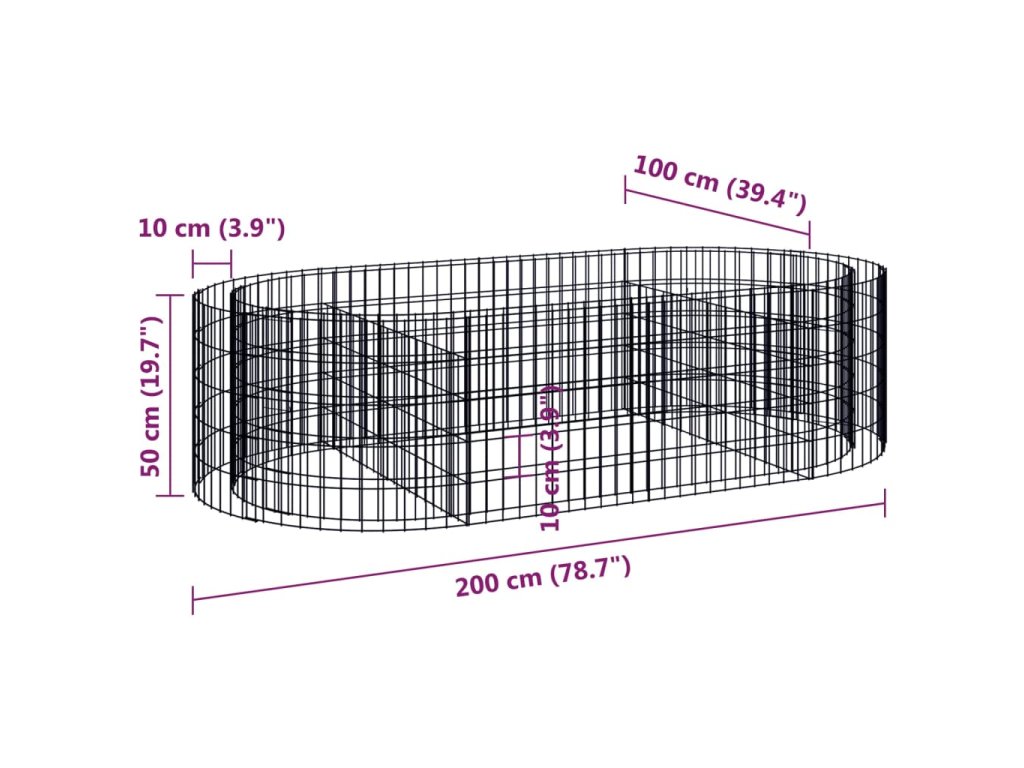 vidaXL Gabionový vyvýšený záhon pozinkované železo 200 x 100 x 50 cm