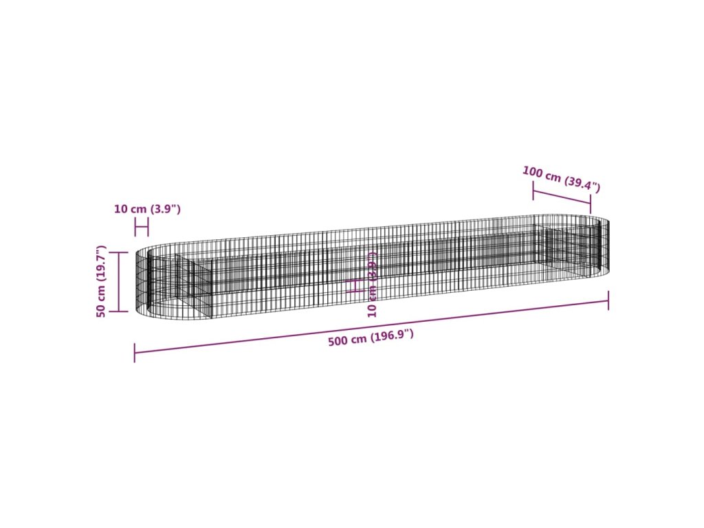 vidaXL Gabionový vyvýšený záhon pozinkované železo 500 x 100 x 50 cm