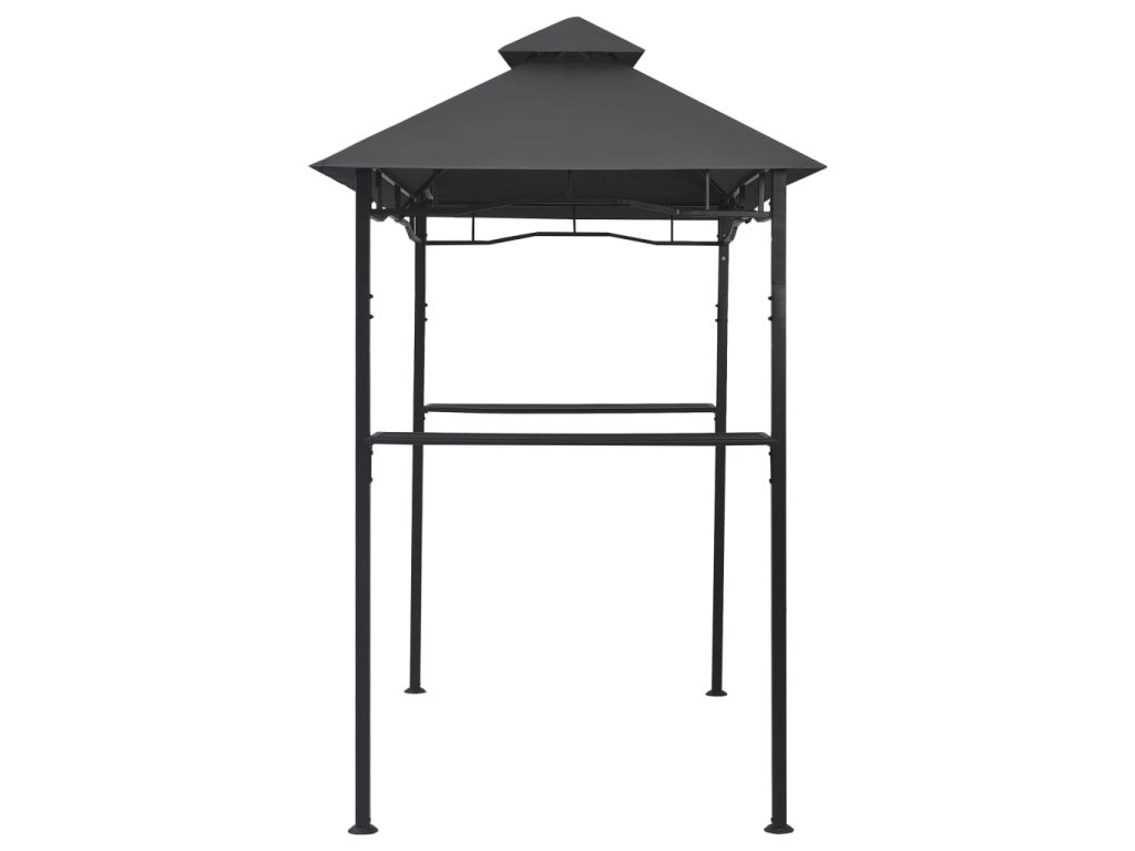 Altán má pevný ocelový rám a vyniká svou mimořádnou stabilitou a odolností. Dvojitá střecha je ušitá z ohnivzdorné látky, která nepodléhá vlivům počasí, a tak vás účinně ochrání před škodlivými UV paprsky, deštěm i potenciálním nebezpečím požáru. Po stranách přístřešku navíc najdete 2 barové pultíky, abyste si mohli pohodlně odložit talíře, omáčky a další grilovací příslušenství a přitom je měli stále při ruce.