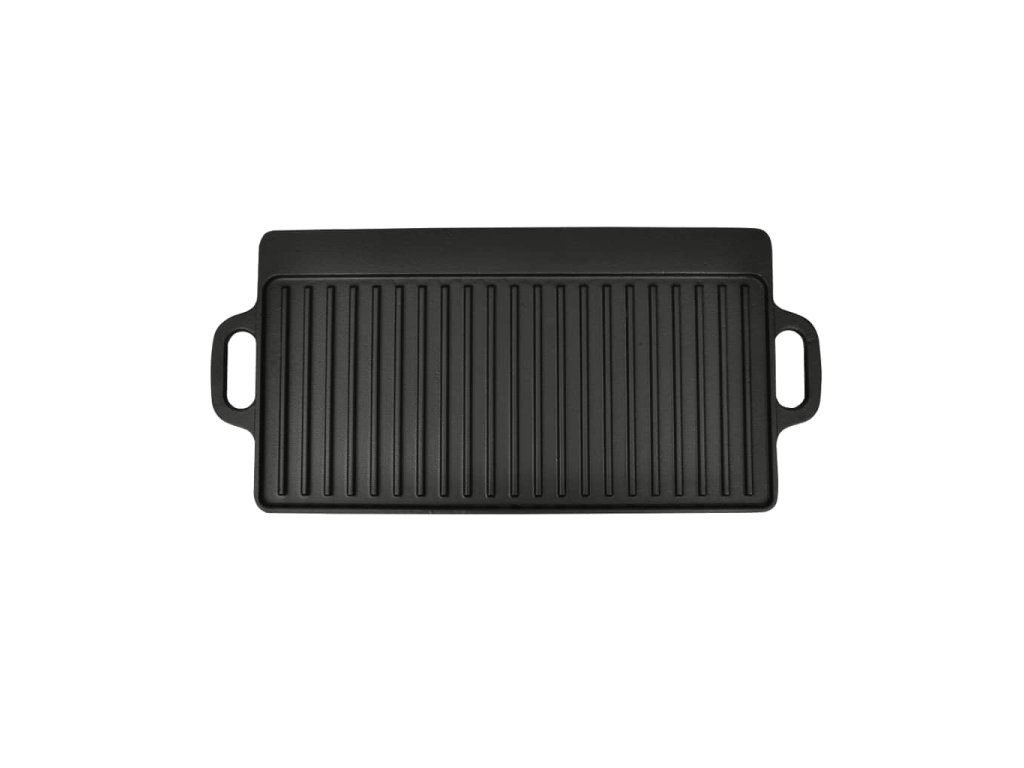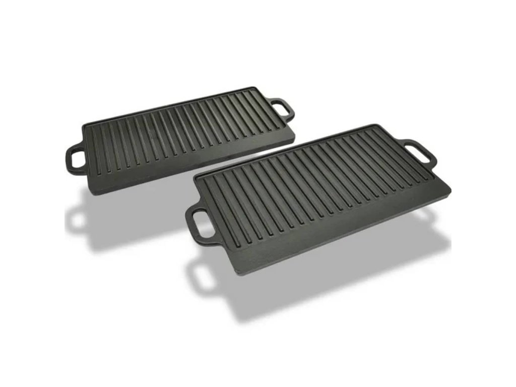 Každý plát měří 46 x 23 cm. Je oboustranný, takže je velmi praktický jak doma, tak i při kempování. Hladkou stranu můžete využít k pečení pizzy, opékání sendvičů, přípravě omelet, vajec, slaniny, nakrájené zeleniny a dalších.