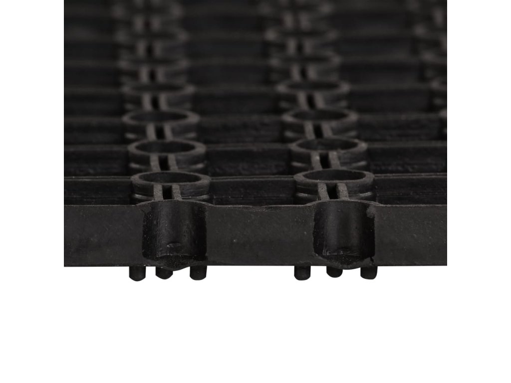 Rohože je možné prostřednictvím konektorů (nejsou součástí balení) snadno spojovat dohromady a vytvářet tak nejrůznější tvary a velikosti. Jsou vyrobeny ze 100% gumy, a výborně tudíž odolávají povětrnostním vlivům, jsou protiskluzové a navíc se snadno čistí.