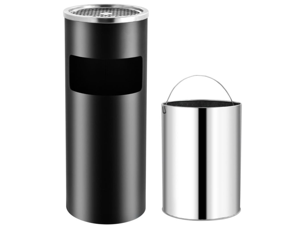 Tento odpadkový koš s popelníkem se vyznačuje elegantním designem z oceli. Tento vysoce kvalitní odpadkový koš s popelníkem má nejen sofistikovaný design, ale zaboduje také svou funkčností. Odpadkový koš má objemnou nádobu na odpadky, a navíc je v horní části vybavený popelníkem, který je vhodný pro použití ve vnitřních i venkovních prostorách, jako např. v hotelích, restauracích, před domem, v kancelářích či jiných veřejných místech.