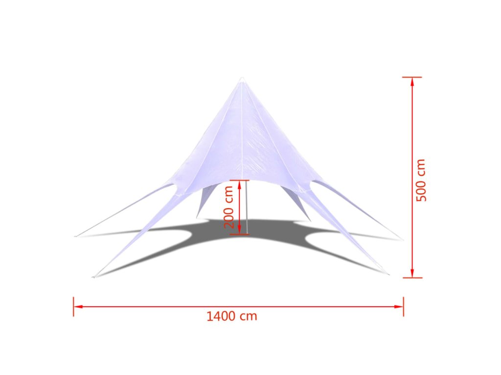 Tento party stan / altán snadno a rychle postavíte na trávníku nebo půdním povrchu a upevníte šesti přiloženými kolíky. Zabere vám to jen pár minut! Tento hvězdicový party stan pokryje plochu o průměru 14 m. Je vyrobený z oxfordské látky, která je vodovzdorná a odolná vůči UV paprskům, takže vám bude sloužit pěknou řádku let.
