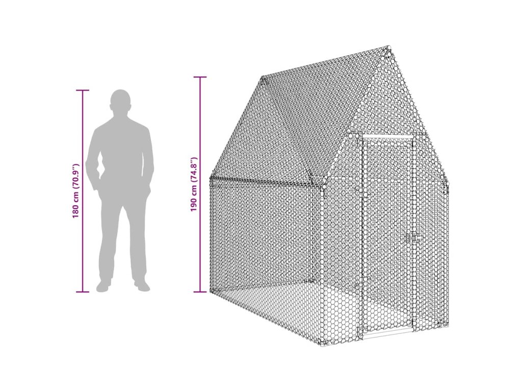 vidaXL Klec pro kuřata stříbrná 200 x 100 x 190 cm pozinkovaná ocel