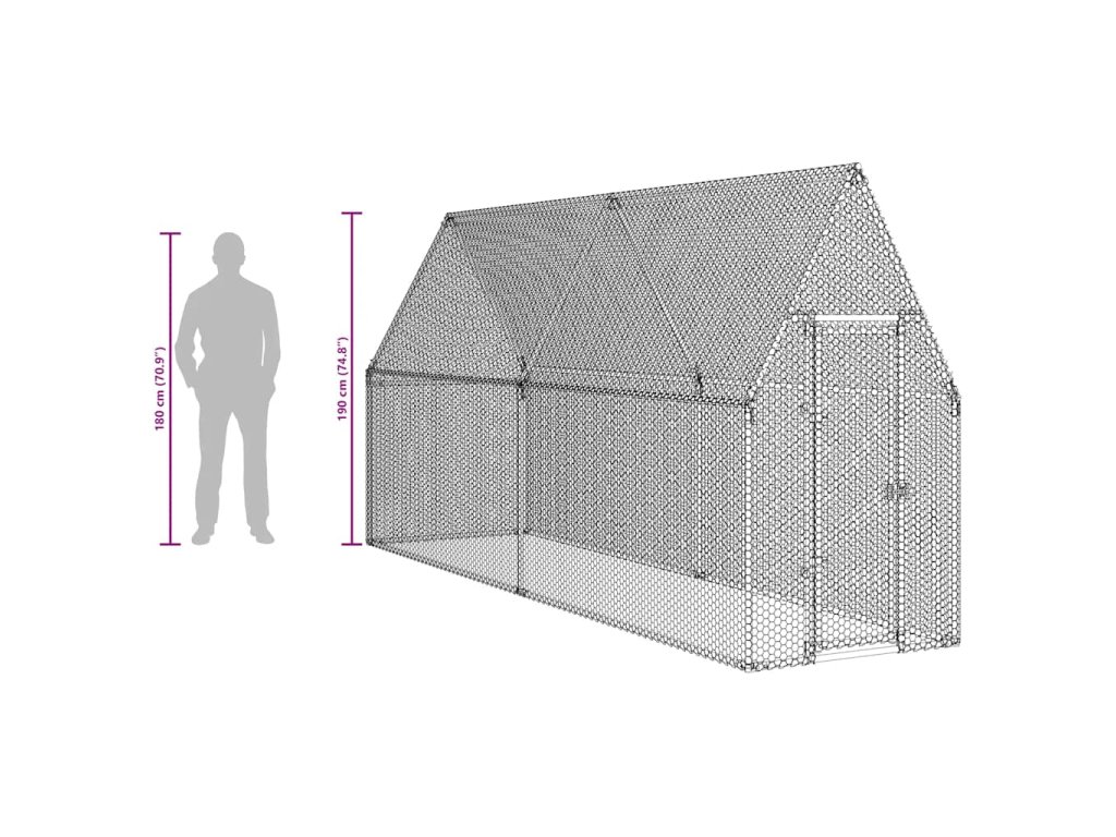 vidaXL Klec pro kuřata stříbrná 400 x 100 x 190 cm pozinkovaná ocel