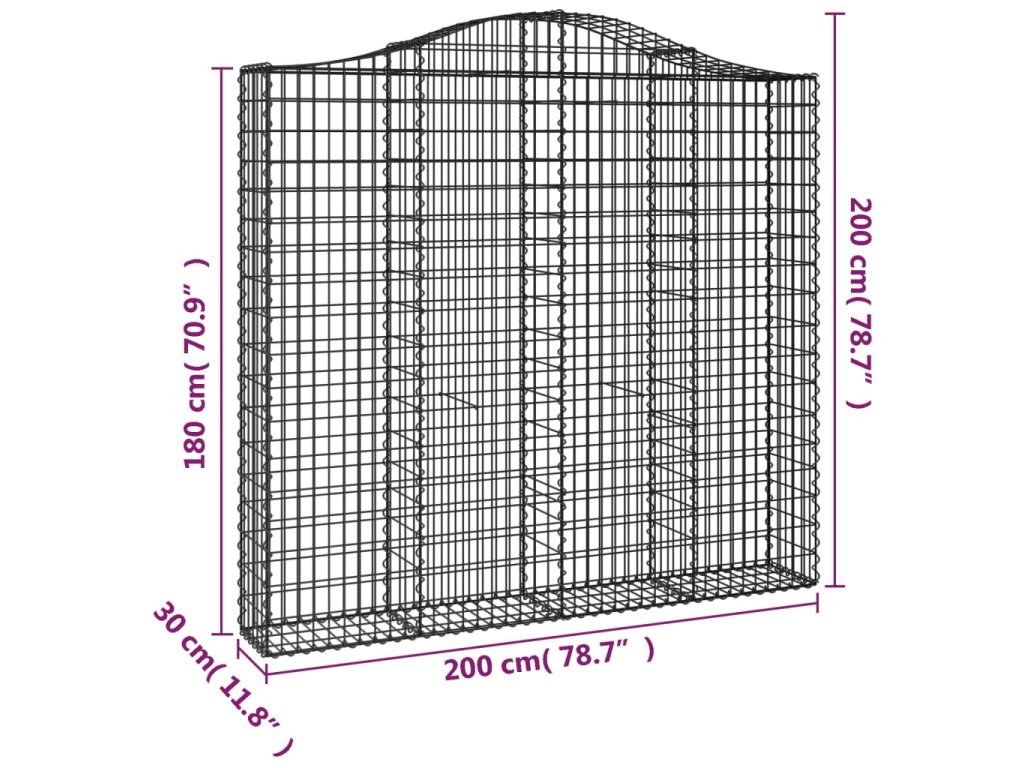 vidaXL Klenuté gabionové koše 10ks 200x30x180/200cm pozinkované železo