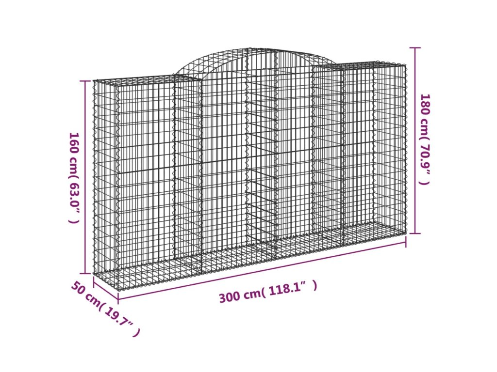 vidaXL Klenuté gabionové koše 10ks 300x50x160/180cm pozinkované železo