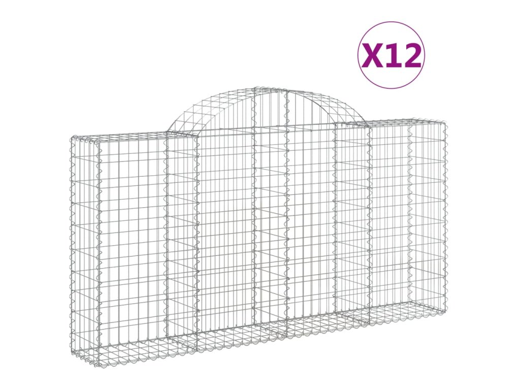 vidaXL Klenuté gabionové koše 12ks 200x30x100/120cm pozinkované železo