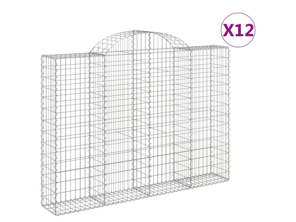 vidaXL Klenuté gabionové koše 12ks 200x30x140/160cm pozinkované železo