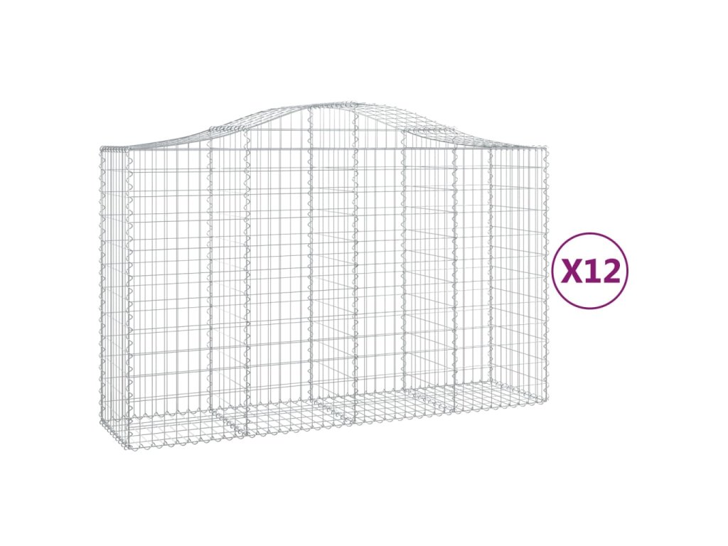 vidaXL Klenuté gabionové koše 12ks 200x50x120/140cm pozinkované železo