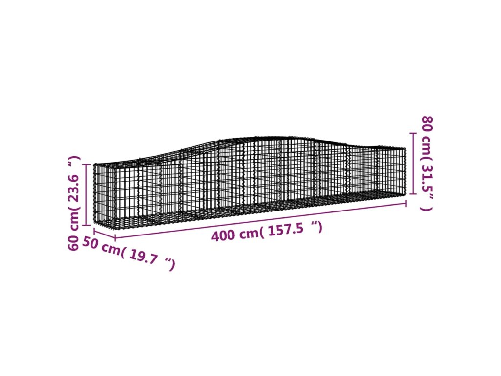 vidaXL Klenuté gabionové koše 15 ks 400x50x60/80 cm pozinkované železo