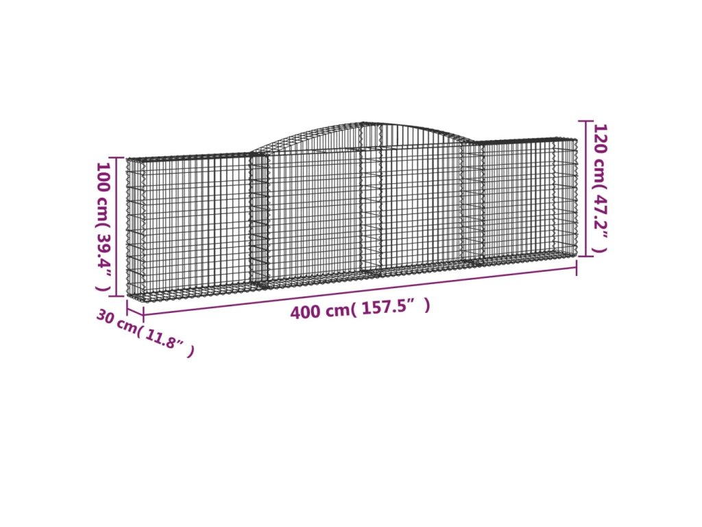 vidaXL Klenuté gabionové koše 15ks 400x30x100/120cm pozinkované železo