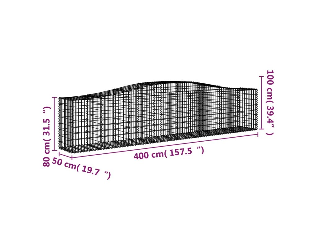 vidaXL Klenuté gabionové koše 2 ks 400x50x80/100 cm pozinkované železo