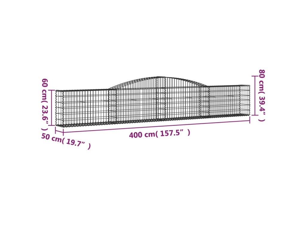 vidaXL Klenuté gabionové koše 25 ks 400x50x60/80 cm pozinkované železo