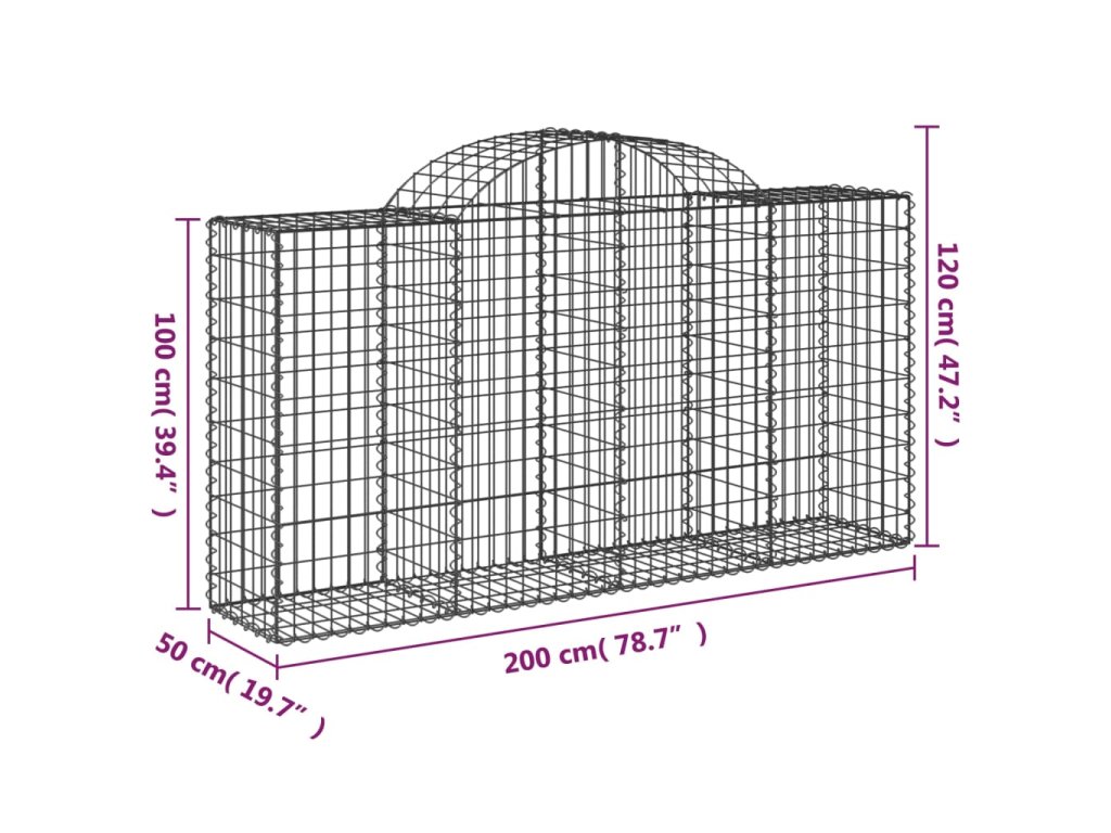 vidaXL Klenuté gabionové koše 25ks 200x50x100/120cm pozinkované železo