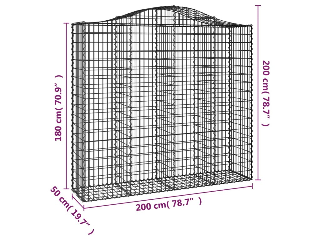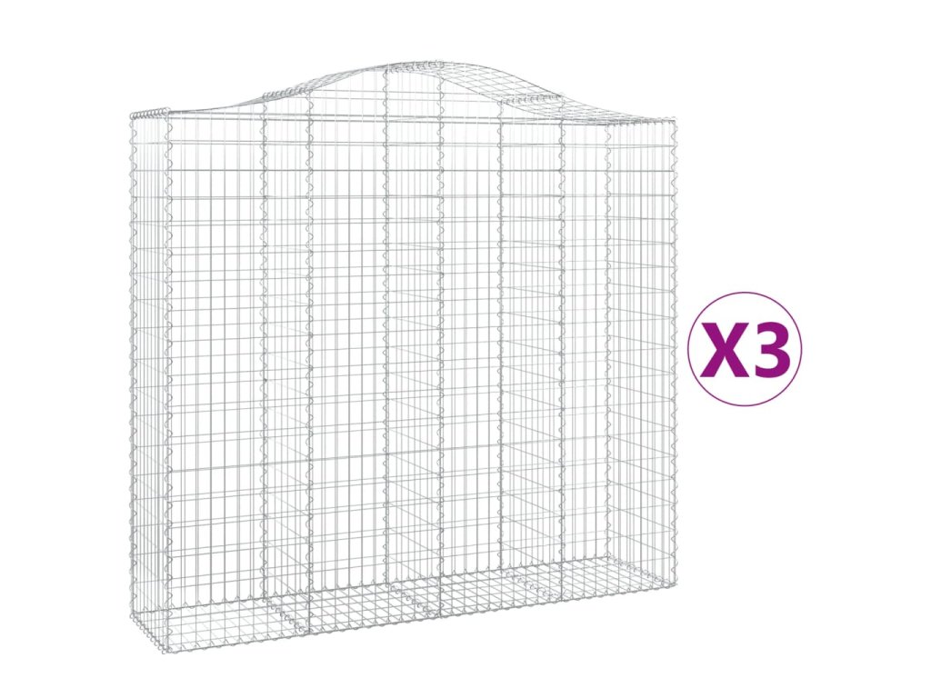 vidaXL Klenuté gabionové koše 3 ks 200x50x180/200cm pozinkované železo