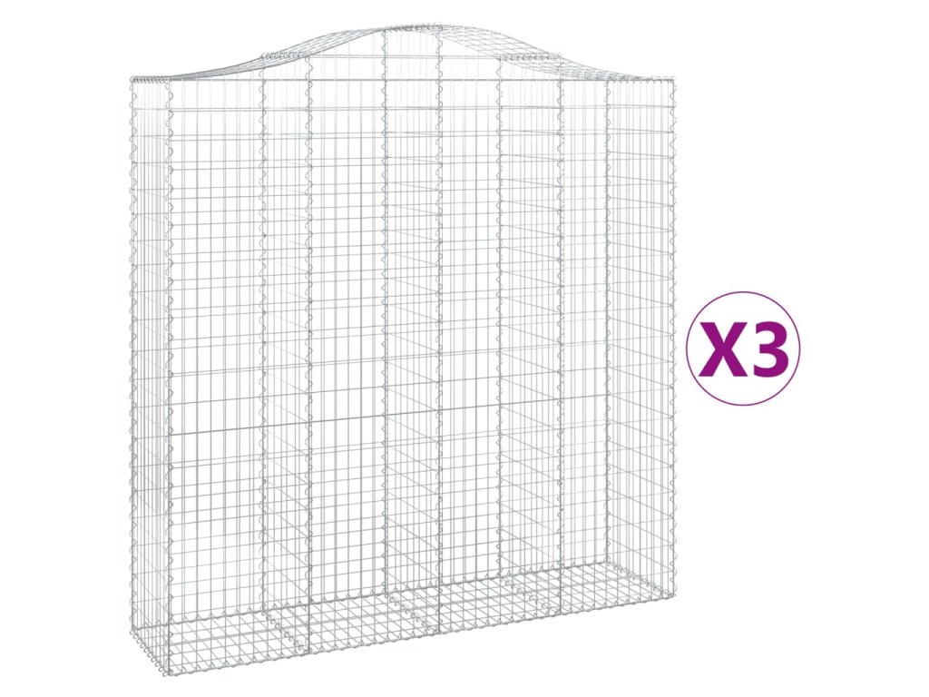 vidaXL Klenuté gabionové koše 3 ks 200x50x200/220cm pozinkované železo