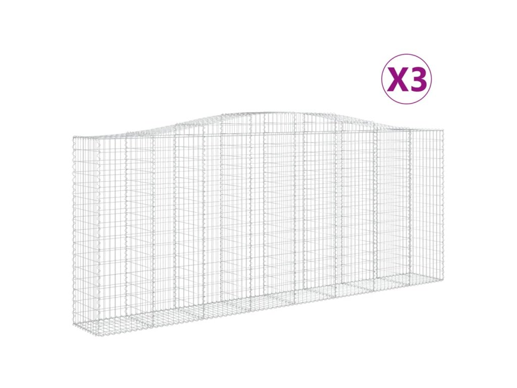 vidaXL Klenuté gabionové koše 3 ks 400x50x160/180cm pozinkované železo
